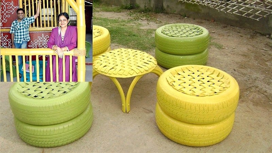 На сегодняшний день в мире существует большое количество непеработанных использованных покрышек, поэтому Bamboo House India предлагает другой подход их превращения в другой жизнеспособный продукт - переделка шин в красивые предметы мебели. Bamboo House India доказывает, что старые шинам можно найти хорошее применение. Социальное предприятие упорно работает над созданием передовых моделей мебели, используя шины и отделку из бамбука.