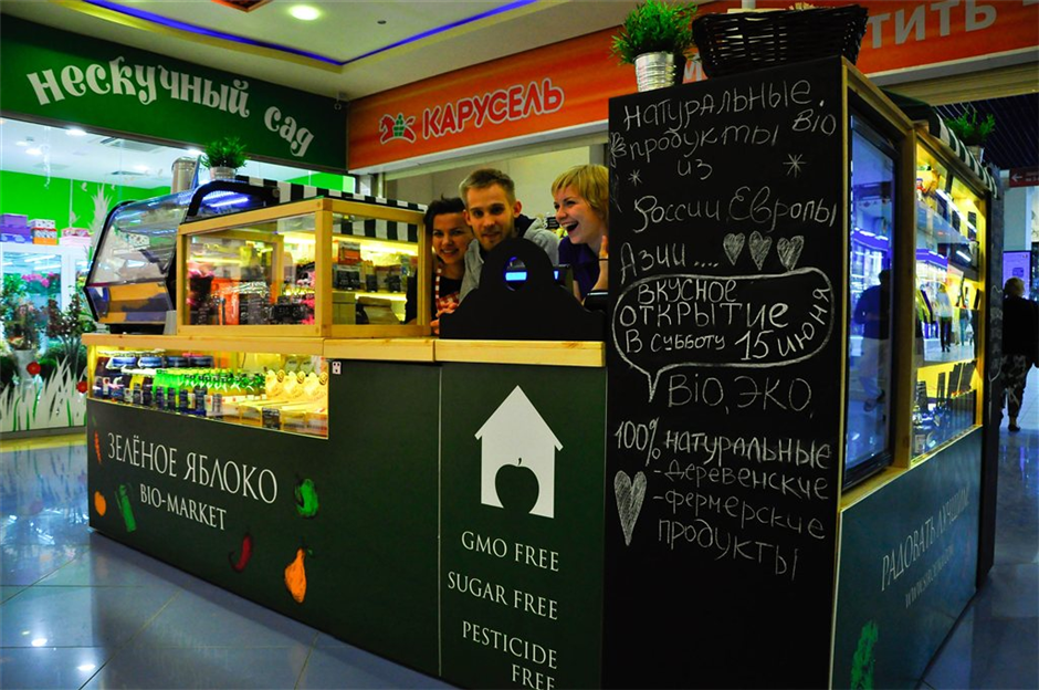 Био-маркет "Зелёное Яблоко" открылся в Тюмени в 2011 году.
