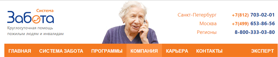 «Система Забота» решает проблему экстренной помощи пожилым людям. В основу проекта положена технология «тревожной кнопки», позволяющей пожилому человеку отправить SOS-сигнал в круглосуточный диспетчерский центр, где на линии постоянно дежурит врач. Клиенты «Системы Забота» обеспечены круглосуточной помощью и тогда, когда ситуация далека от критической: воспользоваться услугами кол-центра системы и получить консультации по самым разным вопросам можно 24 часа в сутки 365 дней в году.