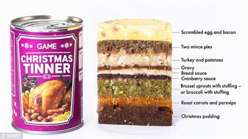 Повторим, в консервной банке девять слоёв традиционных праздничных блюд британского Рождества: