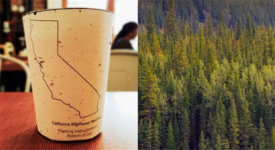 The Plantable Coffee Cup – это и экологичный стаканчик для кофе, сделанный из вторичной переработанной бумаги и – пакетик с семенами – два в одном.