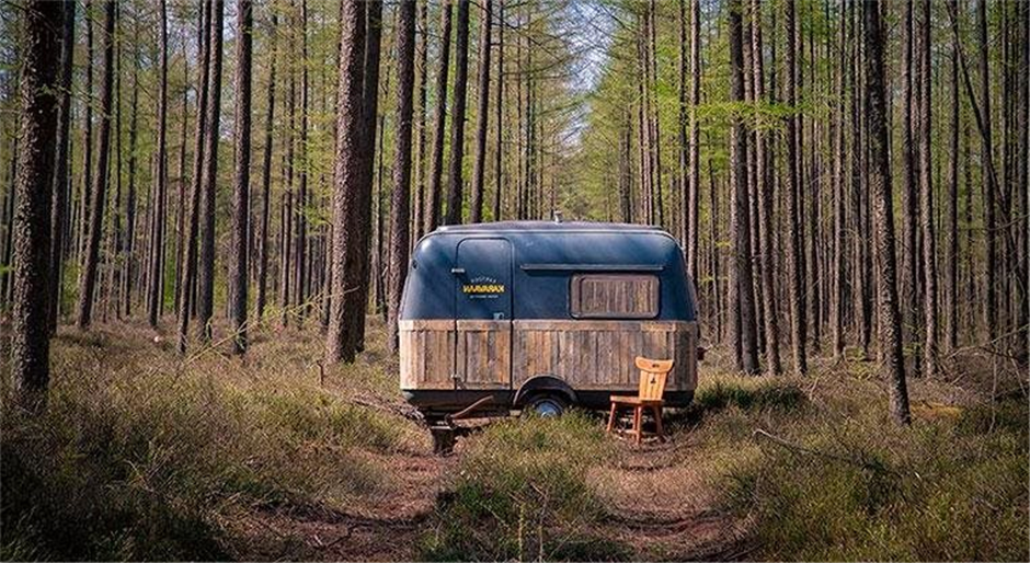Туристический автоприцеп-дача стал офисом для датчан, предпочитающих работать в тиши лесного массива национального парка.