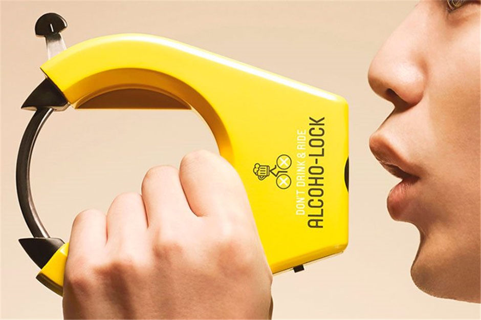 Замок на велосипед с алкотестором. Замок не позволяет владельцу открыть его и поехать на велосипеде, если он изрядно выпил.